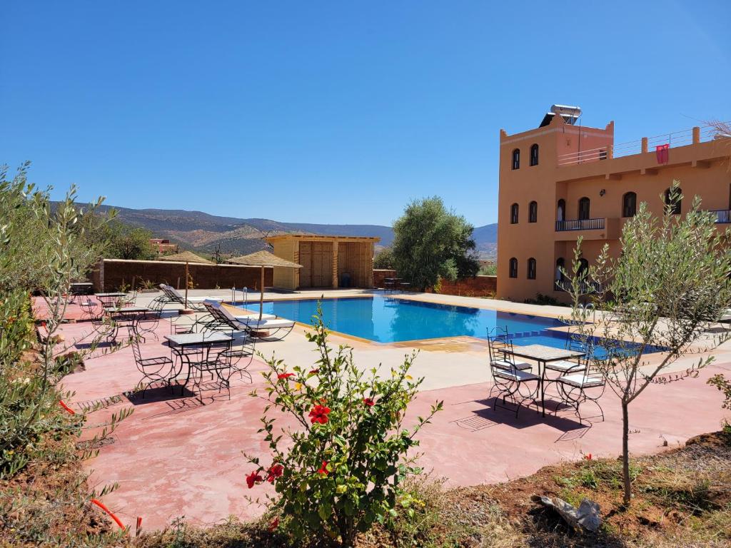 De kamers zijn ruim en sfeervol ingericht, voorzien van moderne gemakken en uitzicht op de omliggende bergen of tuin. In het restaurant kun je genieten van verse Marokkaanse gerechten en internationale specialiteiten, bereid met lokale ingrediënten. Verder is er een buitenzwembad en een prachtig terras waar je kunt ontspannen na een dag vol indrukken. Een fijne plek om even helemaal tot rust te komen.
