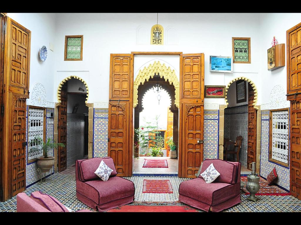 De receptie is 24 uur per dag geopend en het personeel helpt je graag met tips of excursies. Het hotel ligt op 5 minuten rijden van station Fès en 20 minuten van de luchthaven. De beroemde stadspoort Bab Boujloud ligt op slechts 4,7 kilometer afstand.