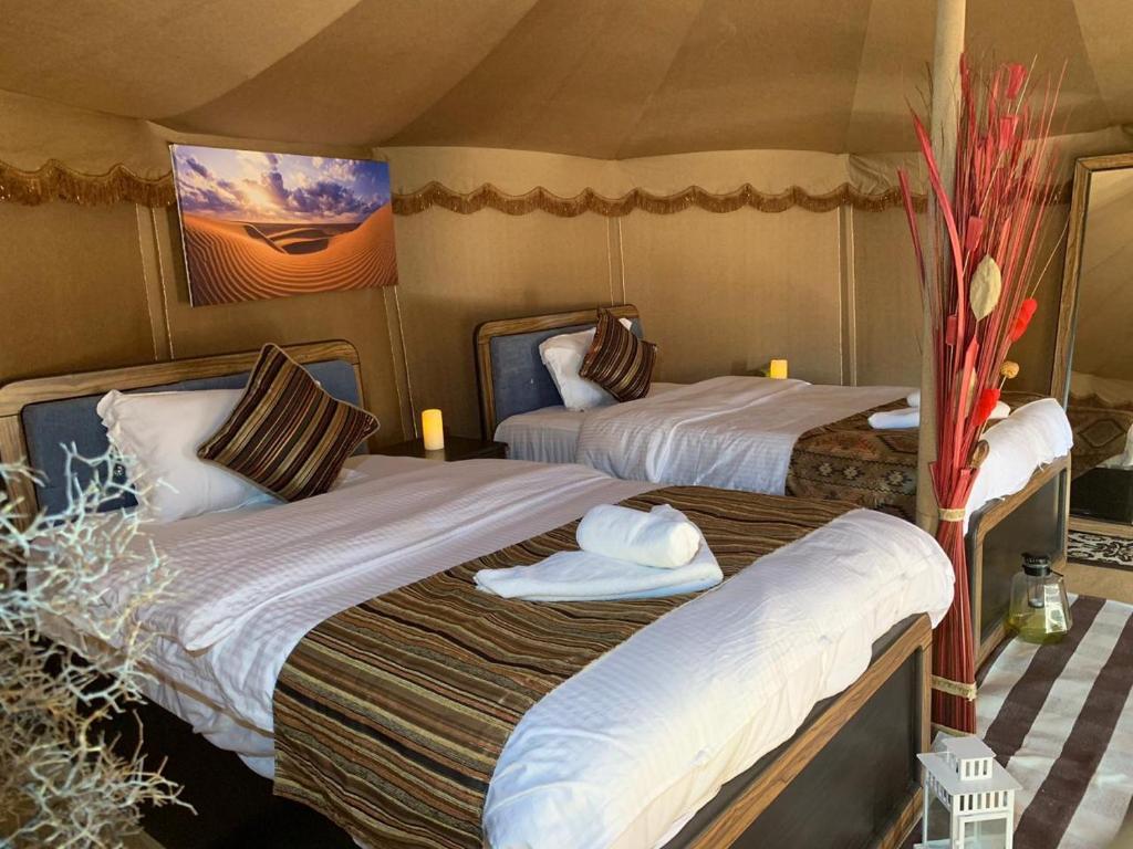 Daarna begint het avontuur in de woestijn. In Merzouga wacht een kameeltocht van ongeveer een uur door de prachtige duinen van Erg Chebbi. Terwijl de zon langzaam ondergaat en de lucht oranje kleurt, rijd je in stilte over het zand naar een luxe tentenkamp in het hart van de Sahara. Geniet van een traditionele Marokkaanse maaltijd (inbegrepen) onder de sterrenhemel en ervaar de magie van de woestijnnacht.