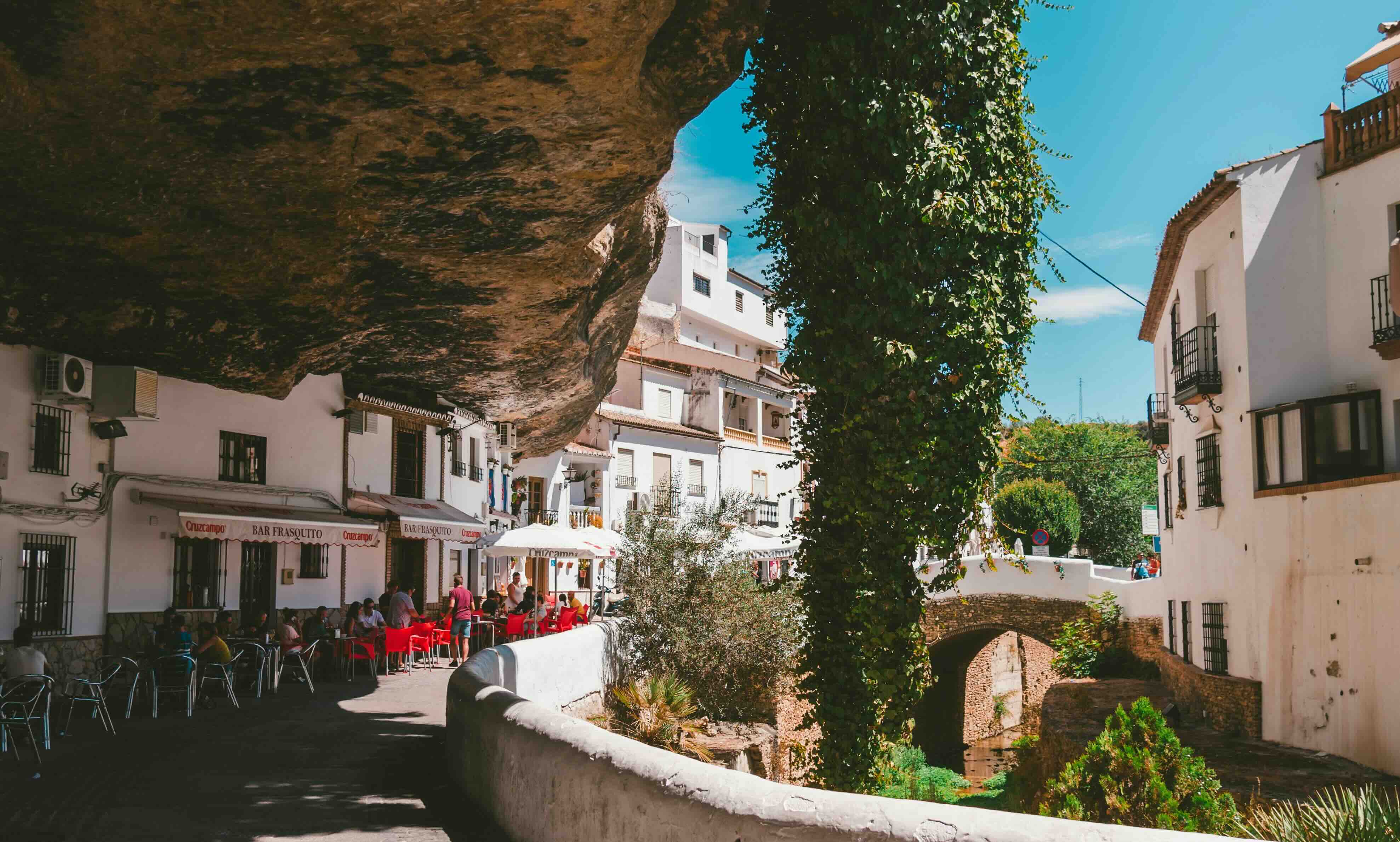 Na het ontbijt check je uit en rijd je landinwaarts via de A-397 de bergen in. Onderweg wisselen haarspeldbochten, dennenbossen en vergezichten elkaar af. In Ronda wacht de iconische Puente Nuevo, die de diepe Tajo-kloof overspant. Wandel door het historisch centrum, bekijk de Plaza de Toros (één van Spanje’s oudste arena’s) en proef lokale specialiteiten in een bodega. Fotostops bij de miradors zijn een must, zeker tegen golden hour. Sluit de avond af in een intiem restaurant of aan de hotelpatio—Ronda is klein, sfeervol en fotogeniek.